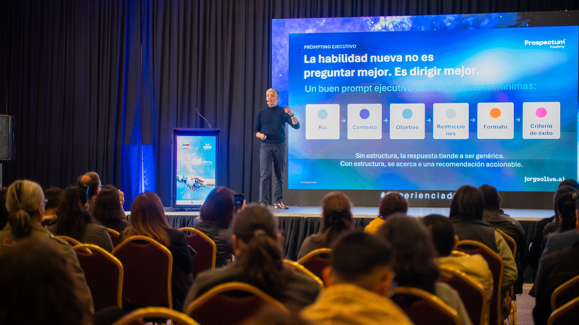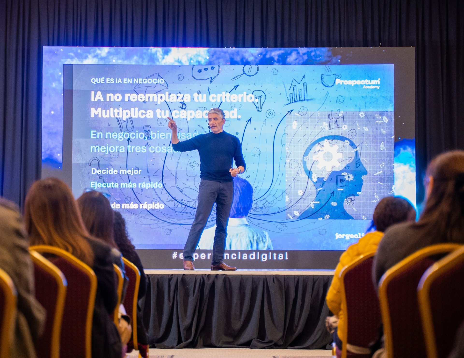 Educador y relator reconocido en LATAM: Masterclasses motivacionales que ilustran casos reales de prospección B2B con IA.