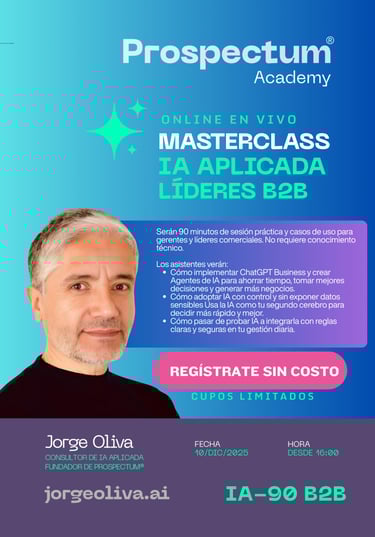 Durante 90 minutos en vivo aprenderás a usar ChatGPT Business y Agentes de IA como tu segundo cerebro para el negocio: ahorrar tiempo, tomar mejores decisiones y generar más oportunidades comerciales, sin exponer datos sensibles.